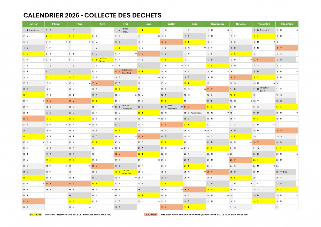 Calendrier de collecte des déchets